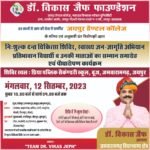 डॉक्टर विकास जैफ फाउंडेशन, हमेशा आपकी सेवा में समर्पित है।12 सितंबर को सुबह 10 बजे…